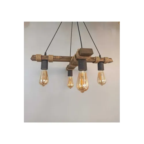 • Avşa 4 Lü Ahşap Halatlı Rustik Modern 4 Lü Sarkıt Avize
