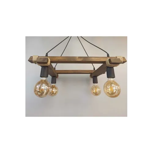 Moda Ahşap Rustik Modern Halatlı 4 Lü Sarkıt Avize